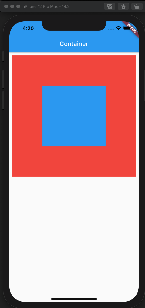body: Container( margin: EdgeInsets.all(10), color: Colors.red, padding: EdgeInsets.all(100), child: Container( color: Colors.blue, ), ),