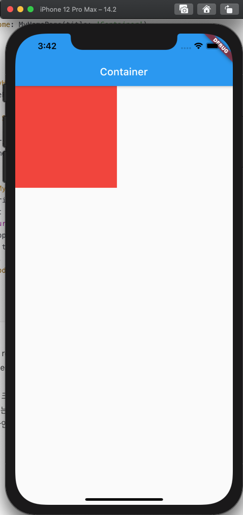 import 'package:flutter/material.dart'; void main() { runApp(MyApp()); } class MyApp extends StatelessWidget { @override Widget build(BuildContext context) { return MaterialApp( title: 'Flutter Demo', theme: ThemeData( primarySwatch: Colors.blue, ), home: MyHomePage(title: 'Container'), ); } } class MyHomePage extends StatefulWidget { MyHomePage({Key? key, required this.title}) : super(key: key); final String title; @override _MyHomePageState createState() => _MyHomePageState(); } class _MyHomePageState extends State<MyHomePage> { @override Widget build(BuildContext context) { return Scaffold( appBar: AppBar( title: Text(widget.title), ), body: Container(), ); } }Container는 row/column/center 등 쉽게 위치를 잡아줄수 있는 방법들이 있지만