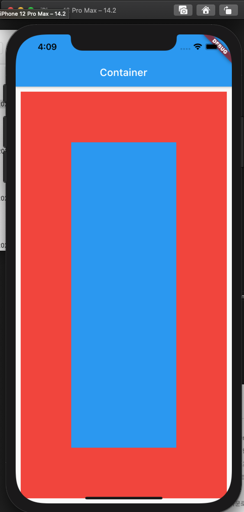 body: Container( margin: EdgeInsets.all(10), color: Colors.red, padding: EdgeInsets.all(100), child: Container( color: Colors.blue, height: 200, ), ),