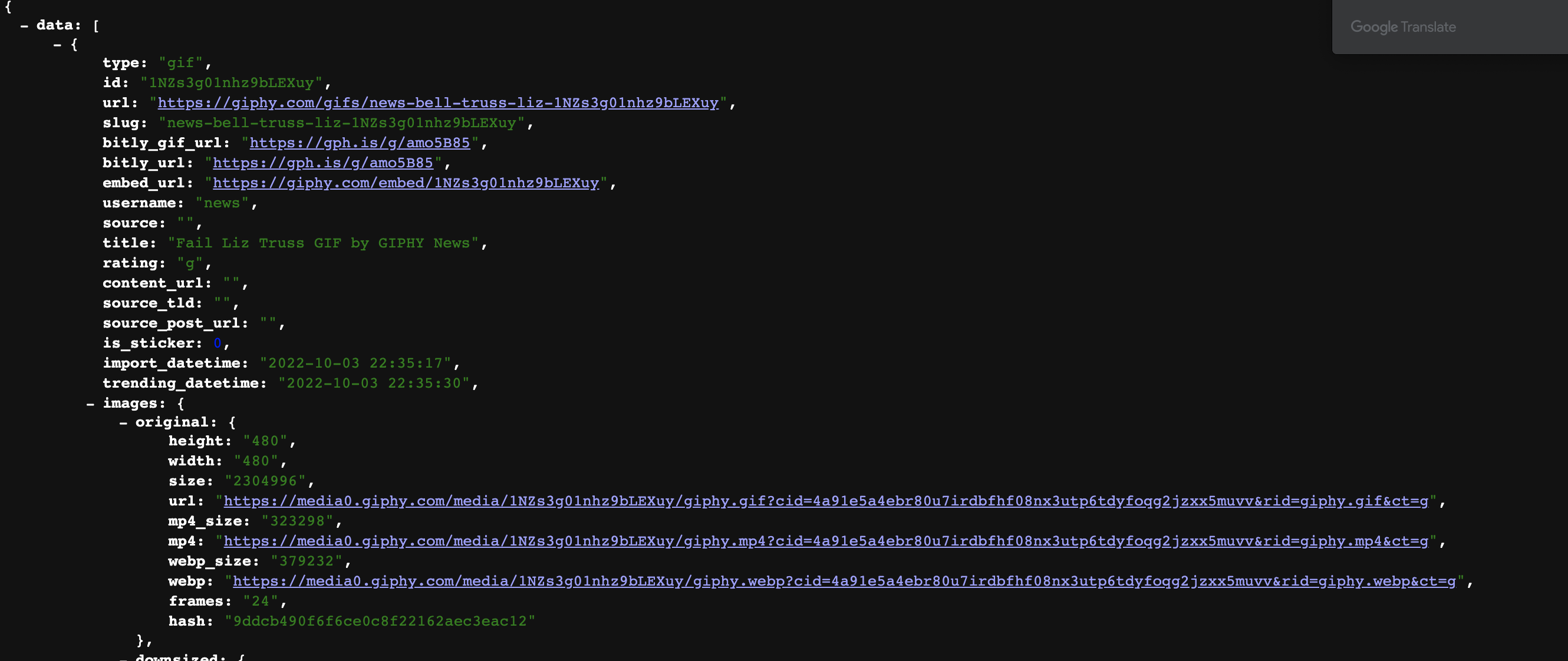 class Network { func fetchTrends() { guard let url = URL(string: "<https://api.giphy.com/v1/gifs/search?api_key=\\(apikey)>") else { return } var request = URLRequest(url: url) request.httpMethod = "GET" URLSession.shared.dataTask(with: request) { data, response, error in if let error = error { print("Error fetch Trend", error.localizedDescription) } print(data) } } }우선 데이터 fetch를 위한 코드이다. dataTask 클로져 내에 data를 사용할 것이다.